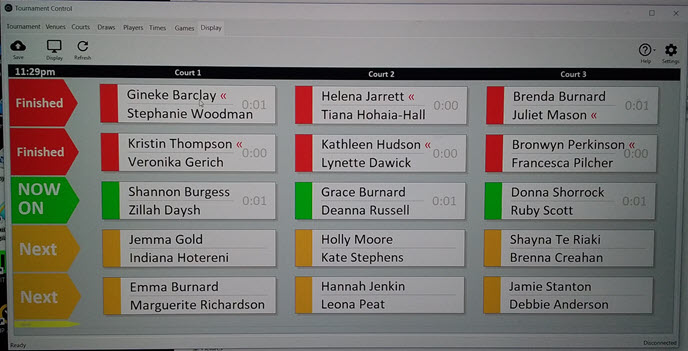 I have to say it worked brilliantly well… What we did was create separate draw spreadsheets manually for each round [as though they came from iSquash], then import them at the end of the previous round. Being able to resize each display section was important – using that we could set the finished, now on, and next all the same size. I would not hesitate to use this again for another SuperChamps (district or national) as it really does help with the visibility of results etc.